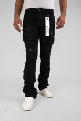 DISASTER SUPER STRETCH DENIM - JET BLACK CARGO STACKED (DZTR-488 JET BLACK) STACKED JEANS