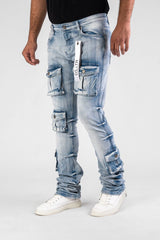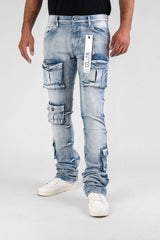 DISASTER SUPER STRETCH DENIM - ICE BLUE CARGO STACKED (DZTR-488 ICE BLUE) STACKED JEANS