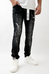 DISASTER SUPER STRETCH SKINNY DENIM - 552 BLK SPLASH (DZTR-552 BLK SPLASH)
