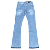 DENIMICITY RIP AND REPAIR LIGHT BLUE WASH WITH BABY BLUE STITCH STACKED JEANS