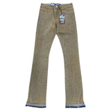 DENIMICITY GOLD COATED WASH DENIM WITH BLACK STONES STACKED JEANS